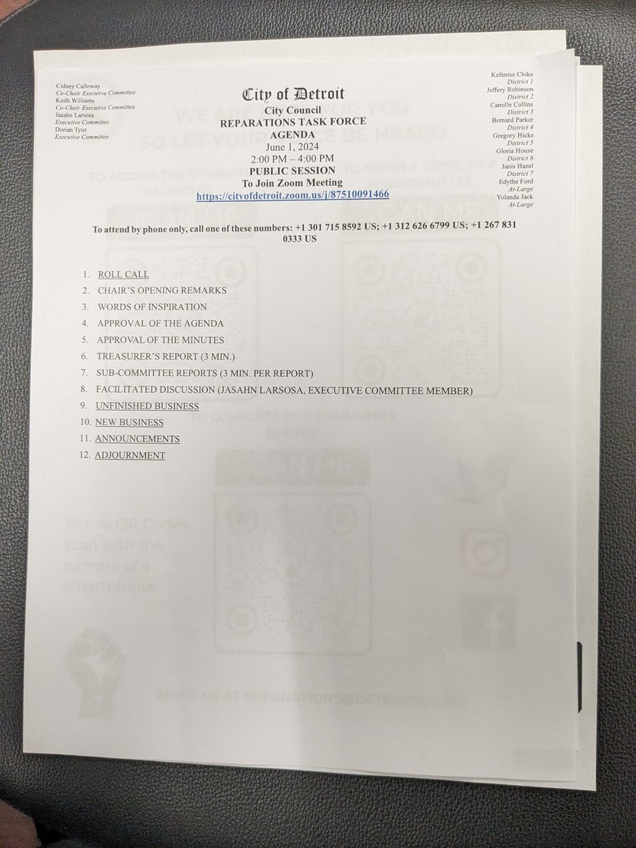 Well folks, this closes my coverage of the Detroit Reparations Task Force meeting for June 1st, 2024. Learn more about our coverage of local meetings at documenters.org
