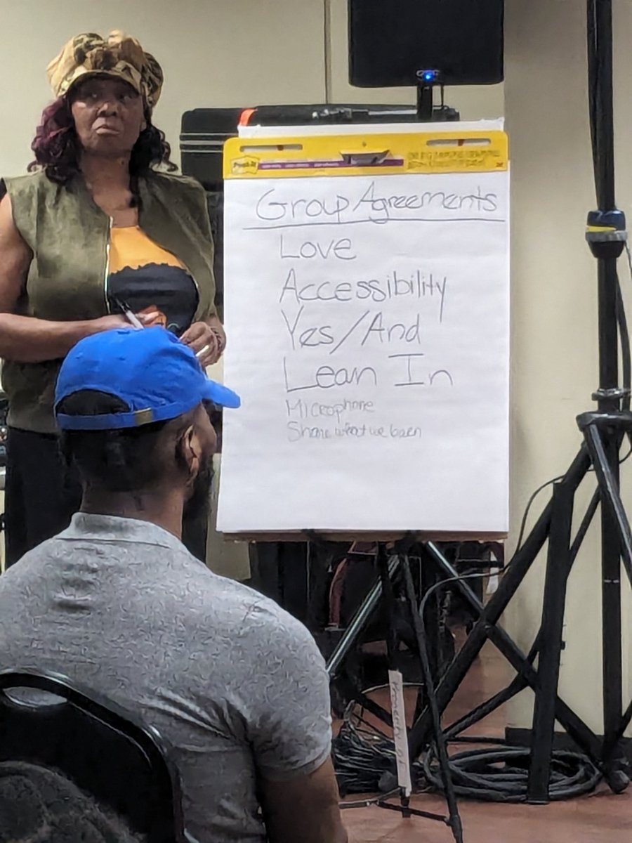Member Larsosa says that two broad questions will be discussed today. They are: What are the beautiful things about Black people in Detroit? What do you think about when you think about the beauty of the community?